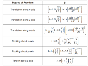 Hằng số spring của đất(Soil spring constant) được tính toán sử dụng các thông số diện tích móng, chiều dày và chiều sâu chôn móng, hệ số poisson m, mô đun cắt G. Hằng số spring của móng nông hình chữ nhật được tính toán sử dụng công thức thực nghiệm của ASCE 41-06. Sử dụng các hằng số spring(độ cứng) để mô tả trong các điều kiện biên mô hình cầu có thể chấp nhận được vì việc mô tả các spring phi tuyến rất phức tạp.